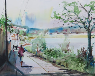 Ayer 23 de Octubre Se organizó en Algorta Bizkaia el concurso de pintura rápida. La mañana fue calurosa pero estuve a gusto pintando en la parte alta del parque de usategi. Al fondo se pueden ver parte de las casas del puerto viejo. La asociación nos recompensó a la entrega con una vale para pintxo y pote todo un detalle. Esta vez hubo suerte y me dieron el premio al artista local. Enhorabuena también al resto de ganadores.